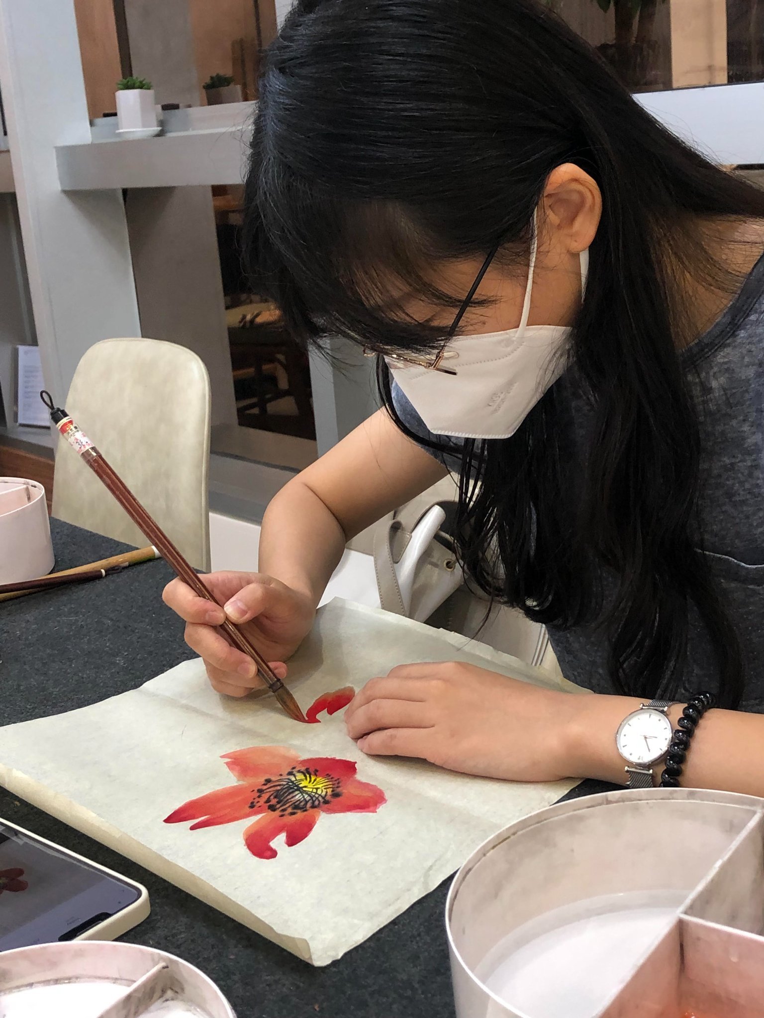 係今次嘅國畫體驗班中,學員可以由淺入深咁學習到用筆、調色、線條等各種國畫入門所需的技巧。在專業國畫導師的細心指導下,就算係毫無任何繪畫經驗嘅朋友都可放心參加。多年教學經驗的導師擅於零基礎教學,全程從旁指導講解,令學員在輕鬆愉快的氛圍下完成作品。為左保持教學質素,課程更採用小班教學,每枱最多只有4人,遇到任何問題亦可以隨時發問。