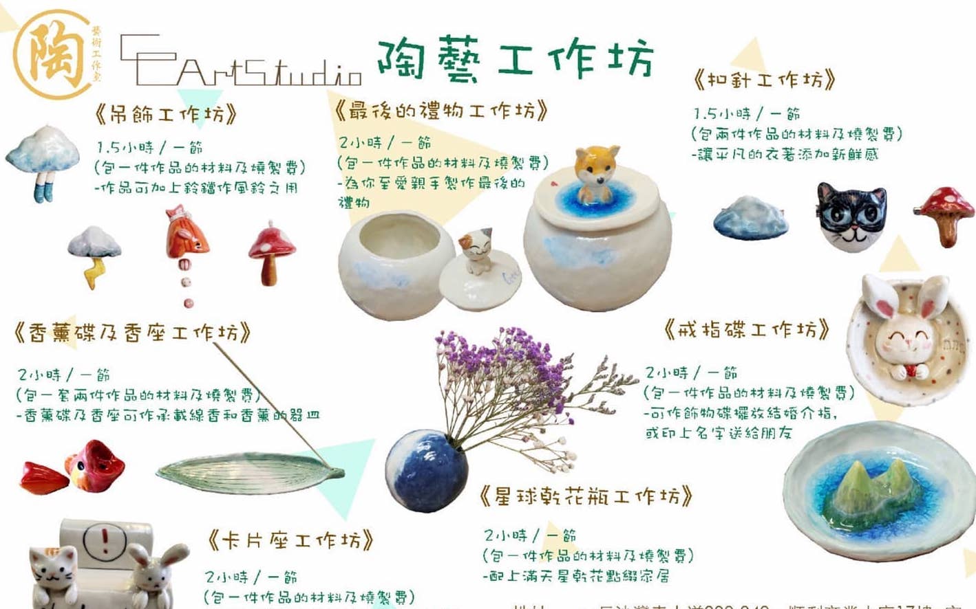 導師有豐富籌辦工作坊的經驗,會從旁指導,零經驗都可以輕鬆上手時既有趣製陶課程!費用已包括材料及導師費。