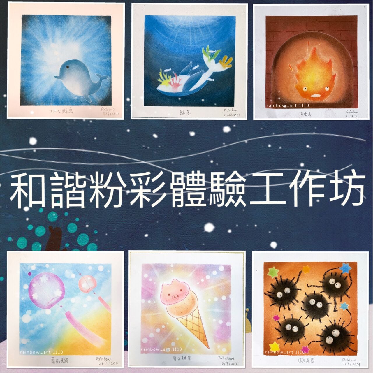 來自日本的和諧粉彩藝術由細谷典克先生創辦,希望透過使用簡單用具、乾粉彩,於作畫的時候配以優美舒適音樂,提供一個令人感到放鬆的環境,讓忙碌的都市人有可以有放鬆的一段時光。