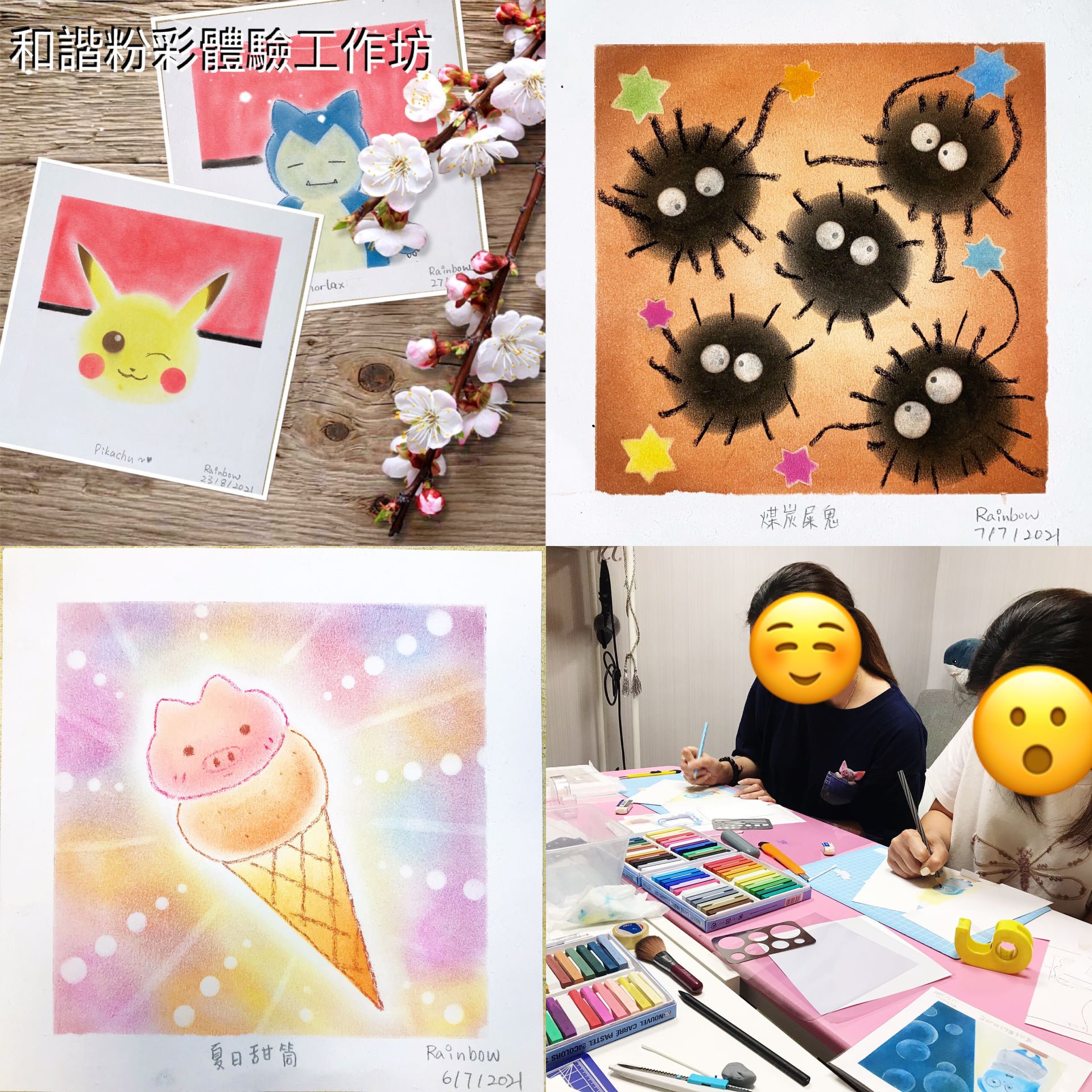 學生可自由挑選自己喜歡的教案作畫,由導師與你一同完成兩幅和諧粉彩畫作。無需繪畫經驗亦可以畫出屬於自己的作品,不論男女老幼及各個年齡亦可以放心參加。 費用已包所有材料及導師費,學生無需準備任何材料上課。