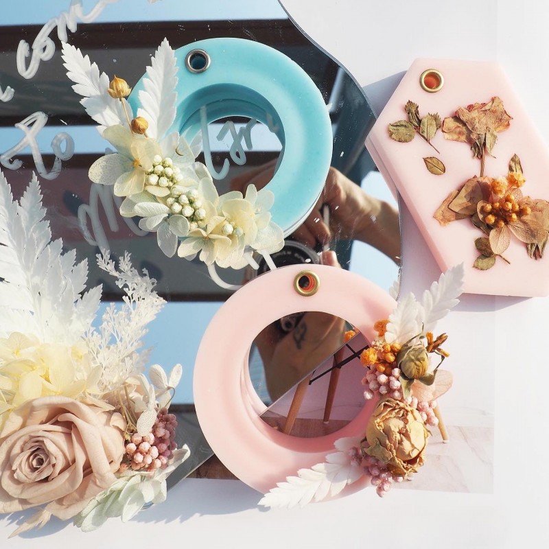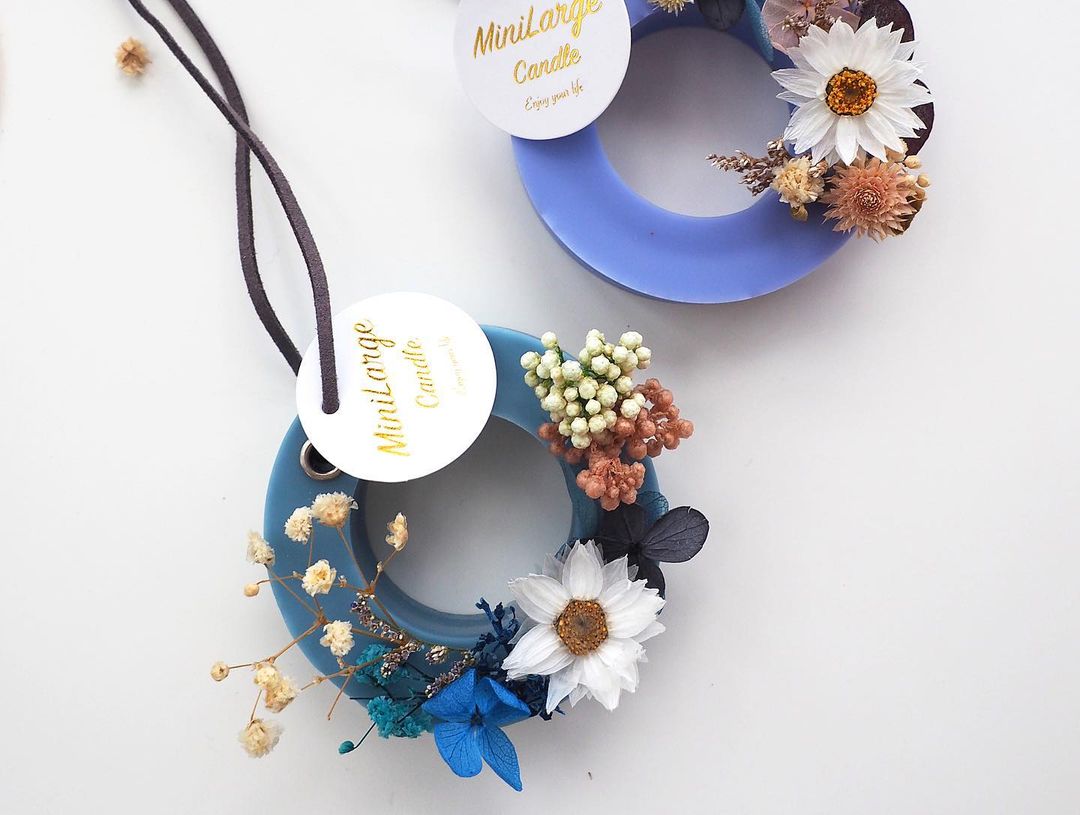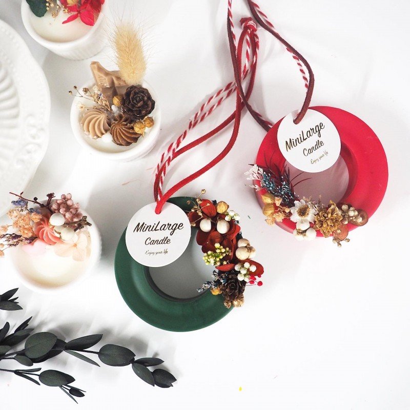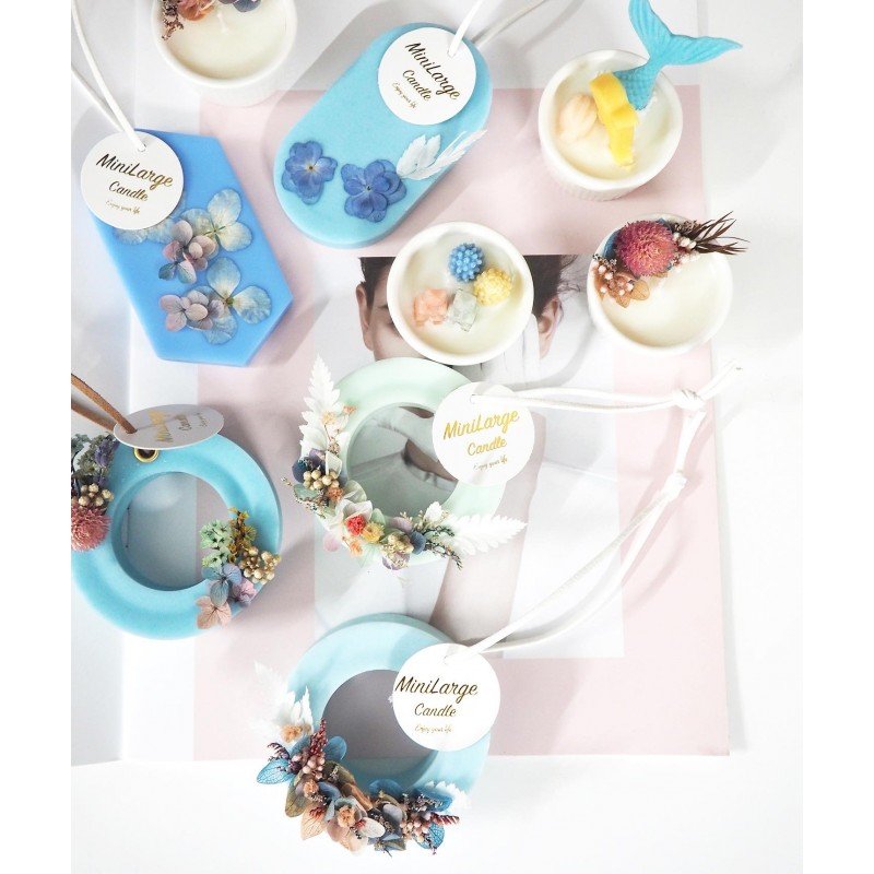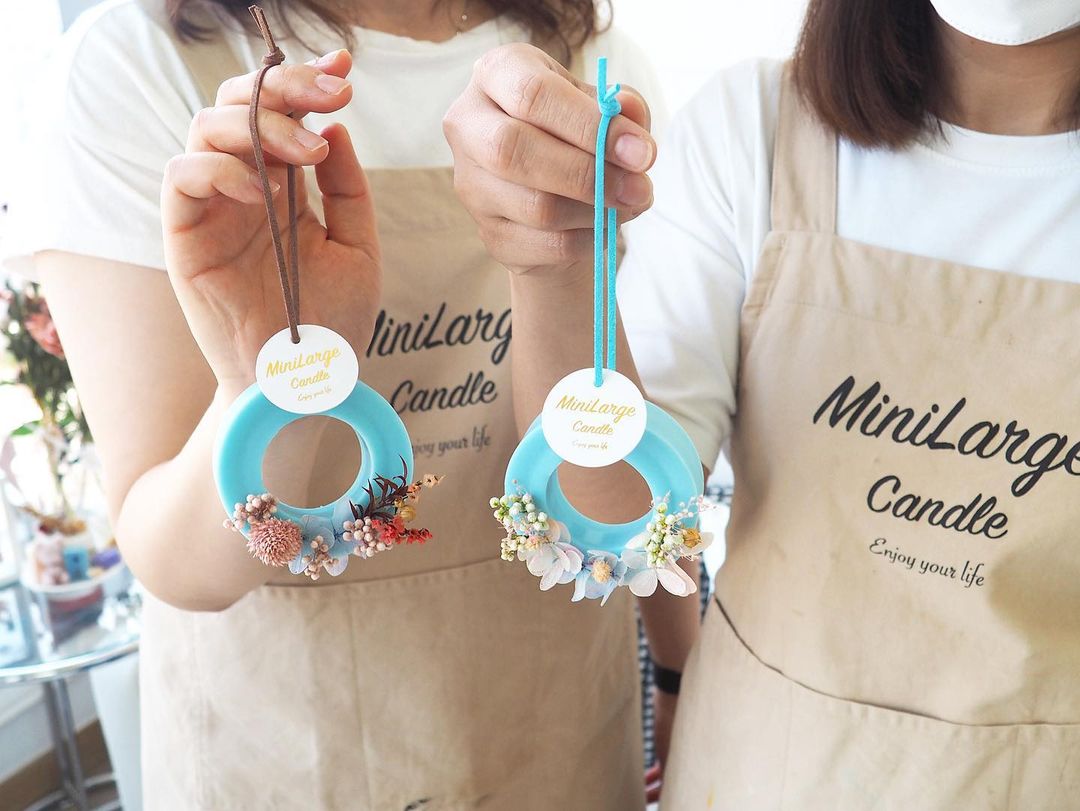課程作品:永生花圓環香薰牌1塊+細蠟燭杯2杯